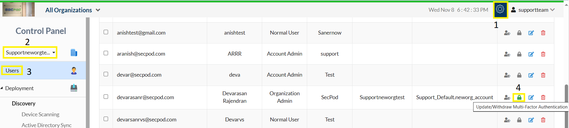 Important: To disable Super Admin MFA, please contact the SecPod Support Team at support@secpod.com