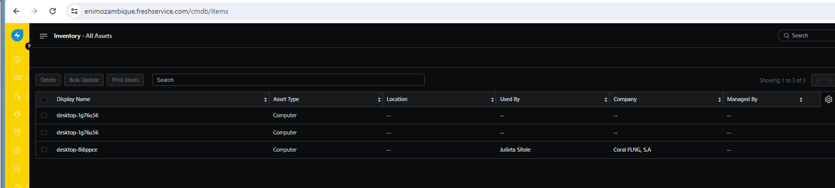 When Freshservice sync occurs during this initial failed scan, an entry may be created with missing details.