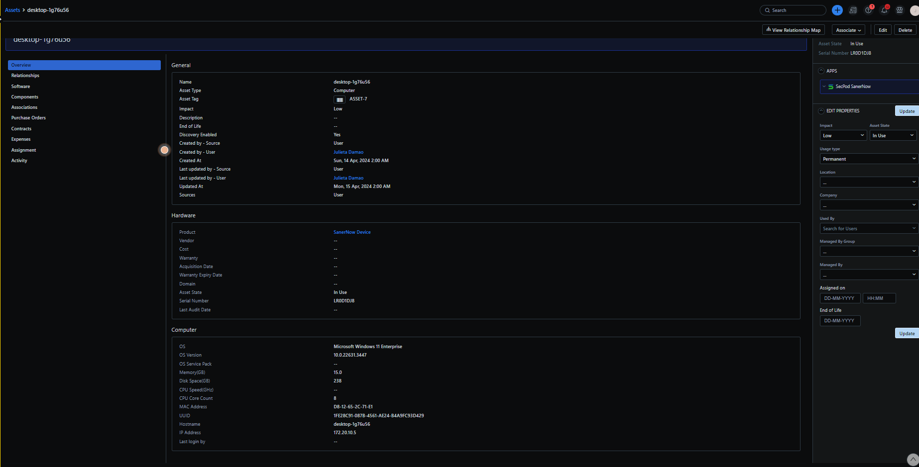 In a subsequent device scan, when Saner CVEM correctly fetches the device details, a new entry is created in Freshservice, resulting in duplicate entries.