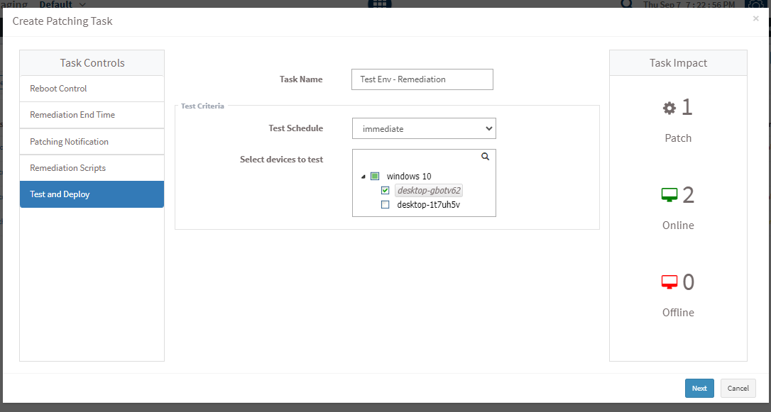 By creating patching jobs with this feature, you can first apply patches on a Test Group and, after verification, proceed to deploy them on a Production Group. Several approval workflows are available to provide flexibility and control during deployment.