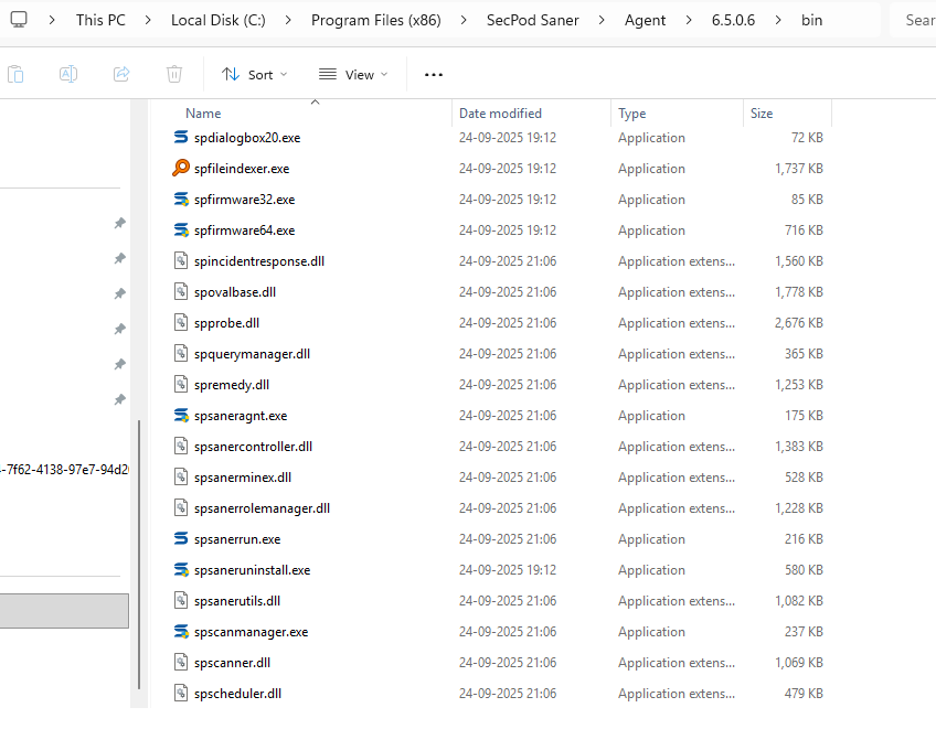 Executable Path: C:\Program Files (x86)\SecPod Saner\Agent\6.5.x.x\bin