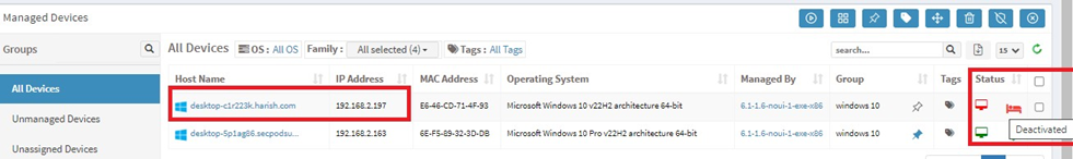 Before Reboot: Devices appear on the Saner CVEM console but show inactive status.