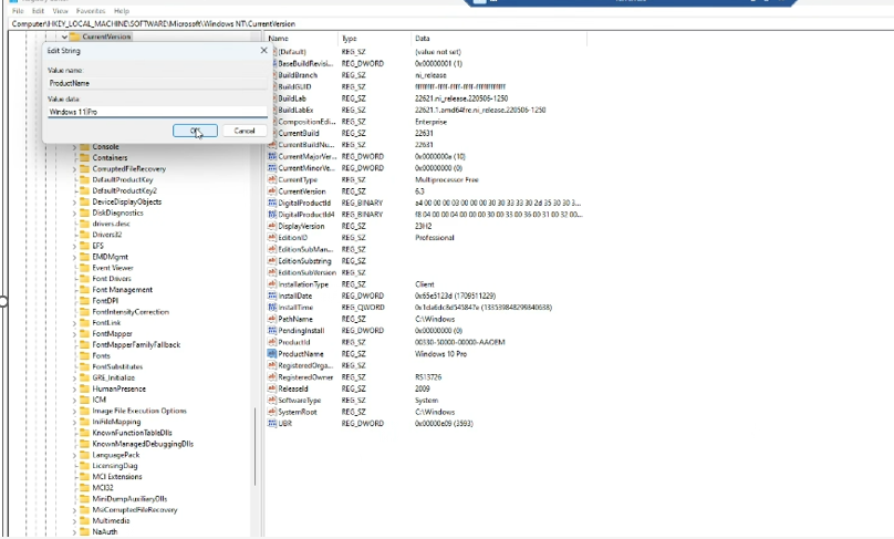 Computer\HKEY_LOCAL_MACHINE\SOFTWARE\Microsoft\Windows NT\CurrentVersion