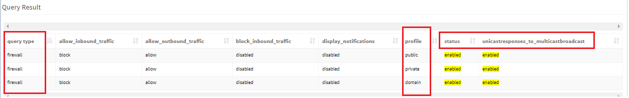 Once devices respond, fetch and view the results to confirm the firewall status.
