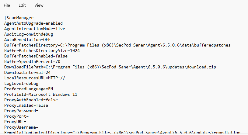 C:\Program Files (x86)\SecPod Saner\Agent\6.5.x.x\conf\settings.ini