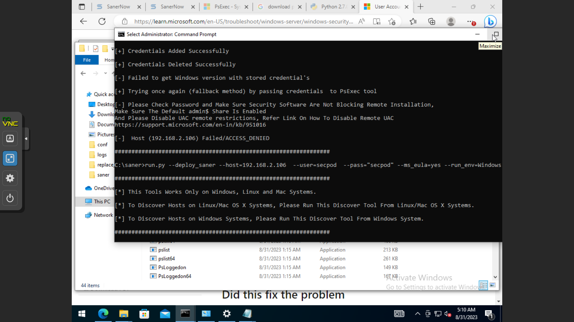 Extract the PsExec tool and copy it into the same folder (C:\Saner).