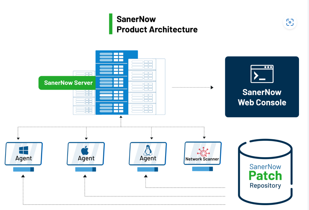 Saner CVEM simplifies patch management by integrating with the Windows Update API and WSUS (Windows Server Update Services). The deployment process is as follows: