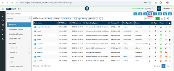 Navigate to the All-Devices page in the Saner CVEM console.