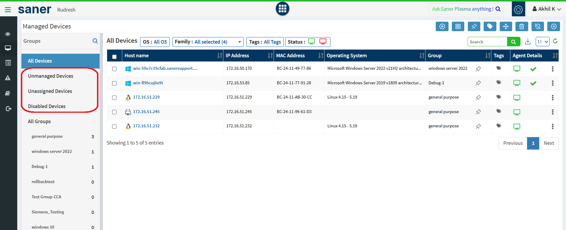 If the device appears in any of the above sections, update its status or assign it appropriately so it can be reported correctly in the Saner CVEM console.