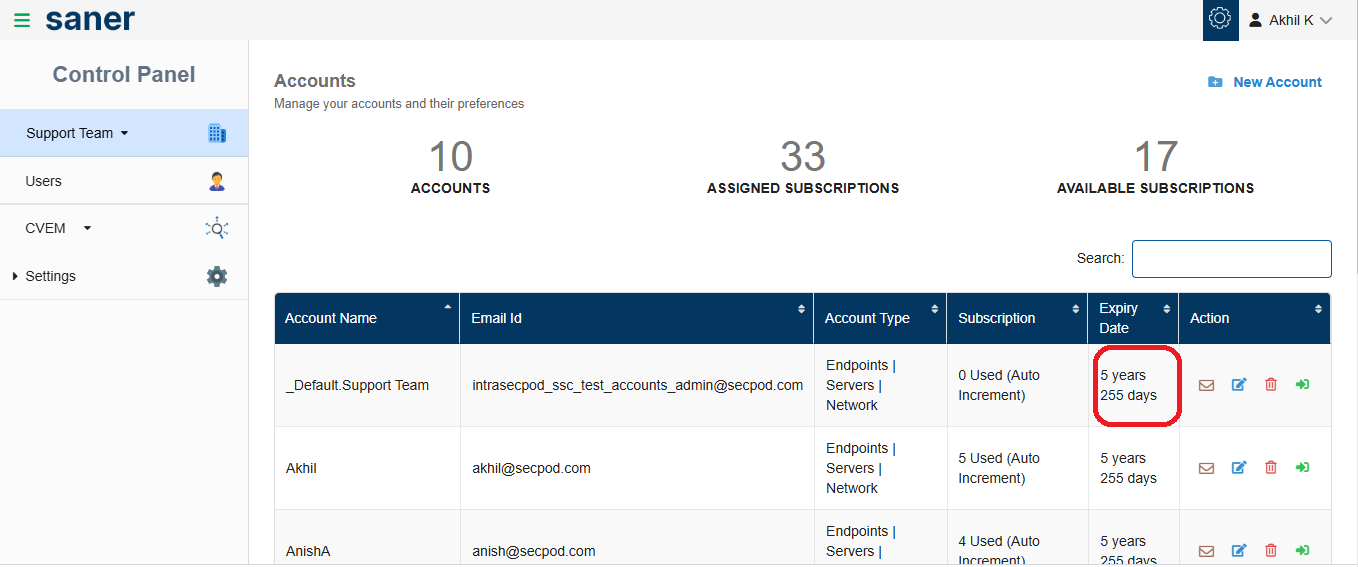 Note: If no active subscription is available, newly installed agents will not be activated, and the device will not be reported in the console.2. Verify Subscription Expiry