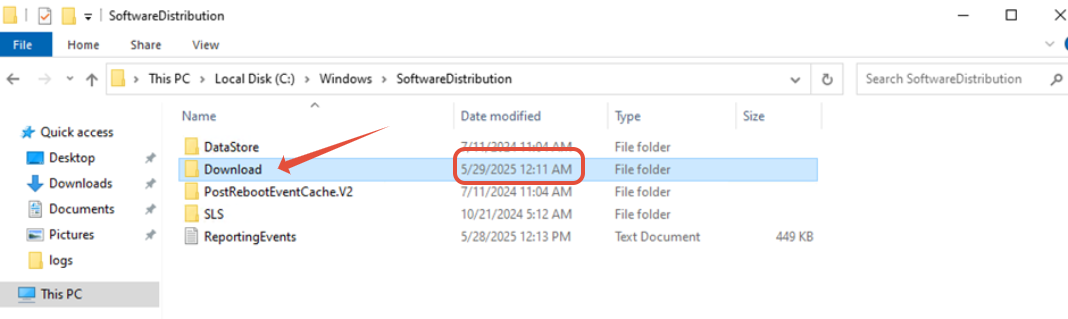 You should see that the relevant Windows Update files have been cleaned up, indicated by the modified date.