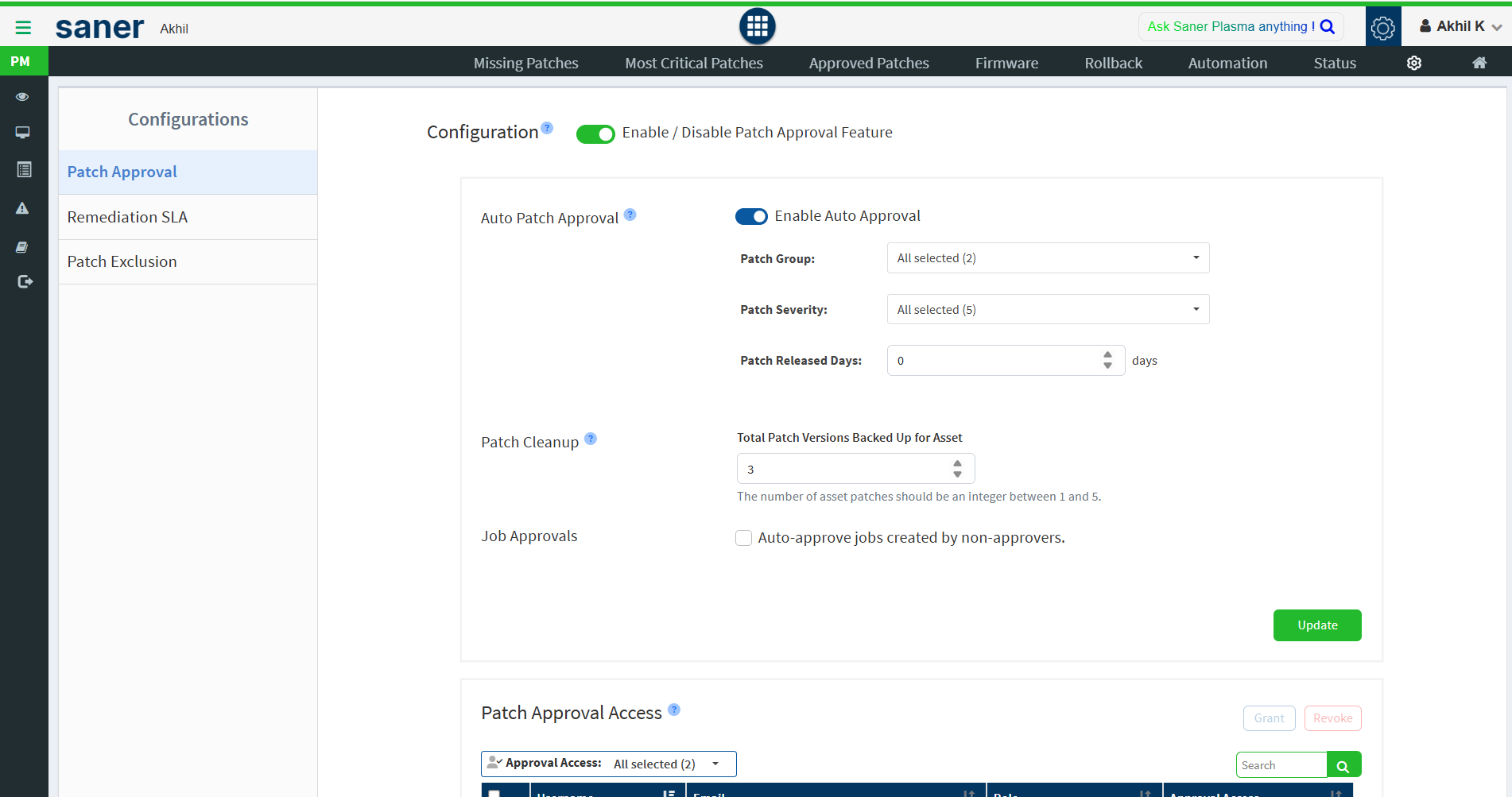 This article provides guidance on enabling and configuring Patch Approval in Saner CVEM to: