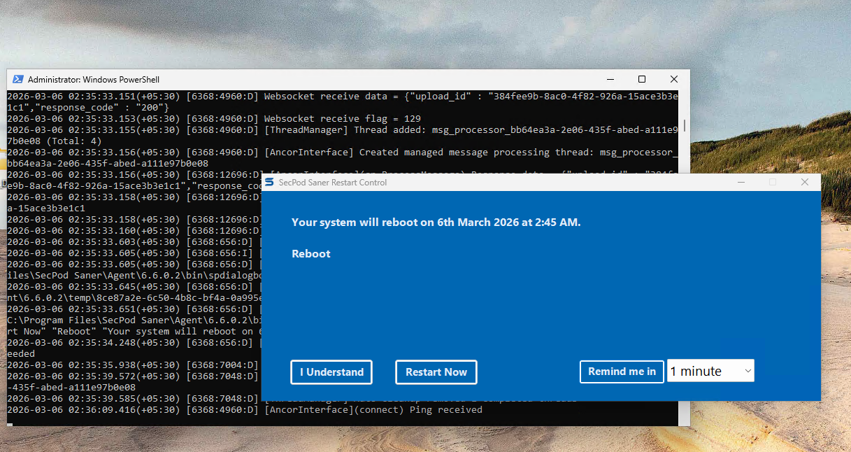 If the user selects I Understand, another notification will appear 2 minutes before the reboot time.