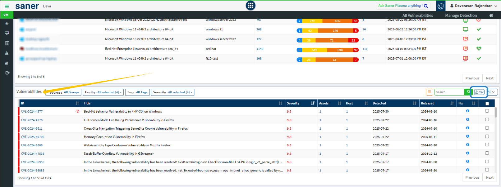 If you are dealing with vulnerabilities appearing daily across multiple machines, it can be challenging to track which fixes are available for which devices. saner CVEM provides a method to retrieve this information efficiently: