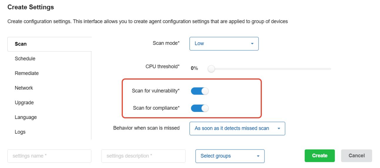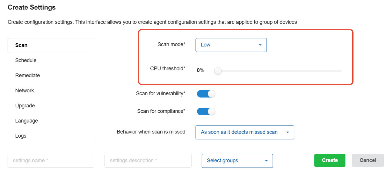 This article guides you through configuring agent settings in Saner CVEM, including scan modes, scan types, CPU thresholds, missed scan behavior, and scheduling daily scans to monitor assets efficiently.