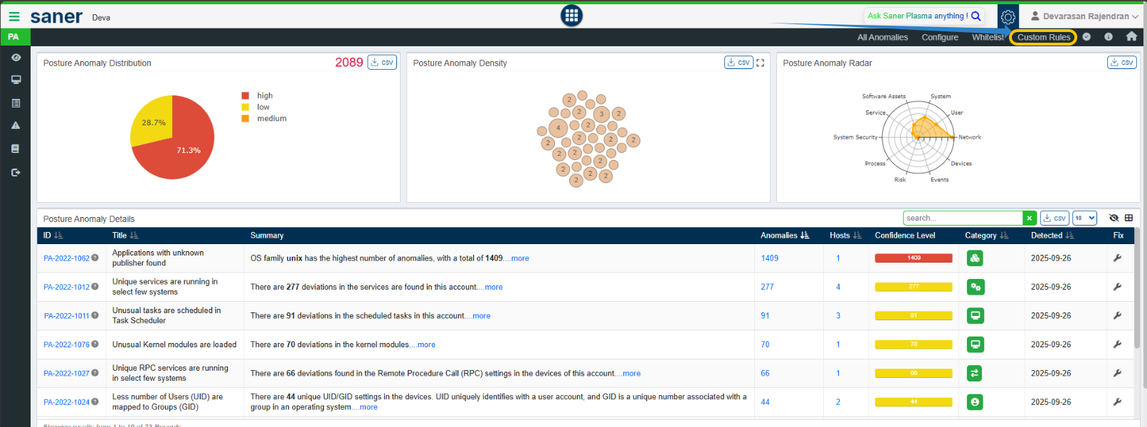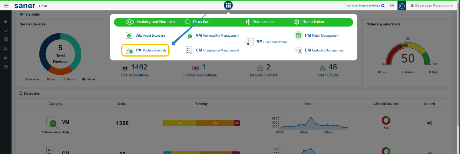 Navigate to the Posture Anomaly module in the Saner CVEM console.