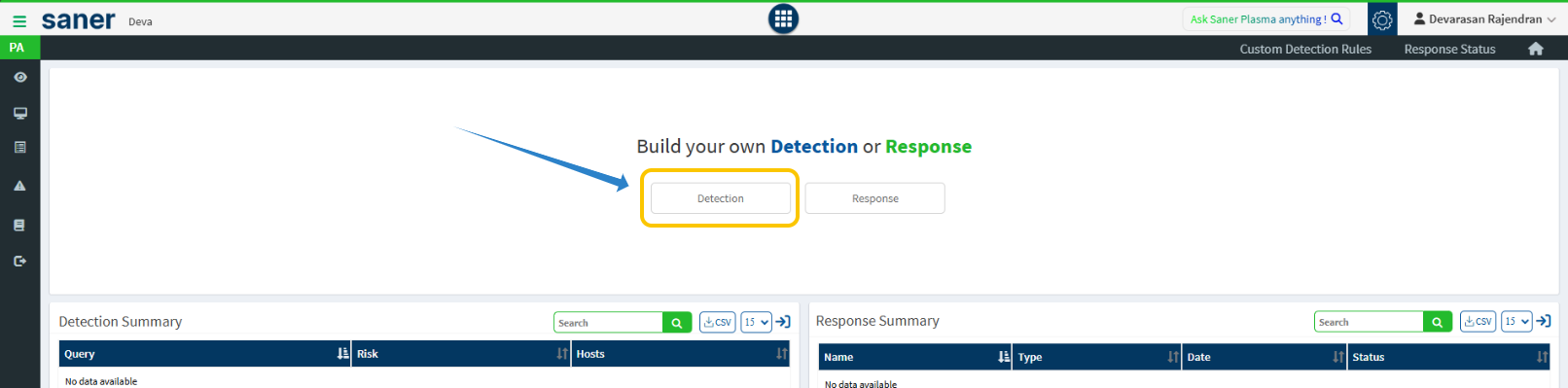 Go to Custom Rules → click on Detection.