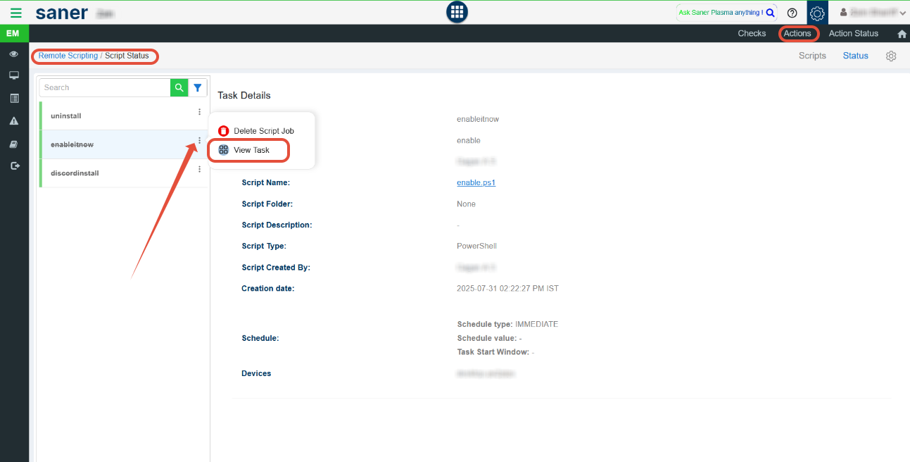 Navigate to Endpoint Management > Actions > Remote Scripting.