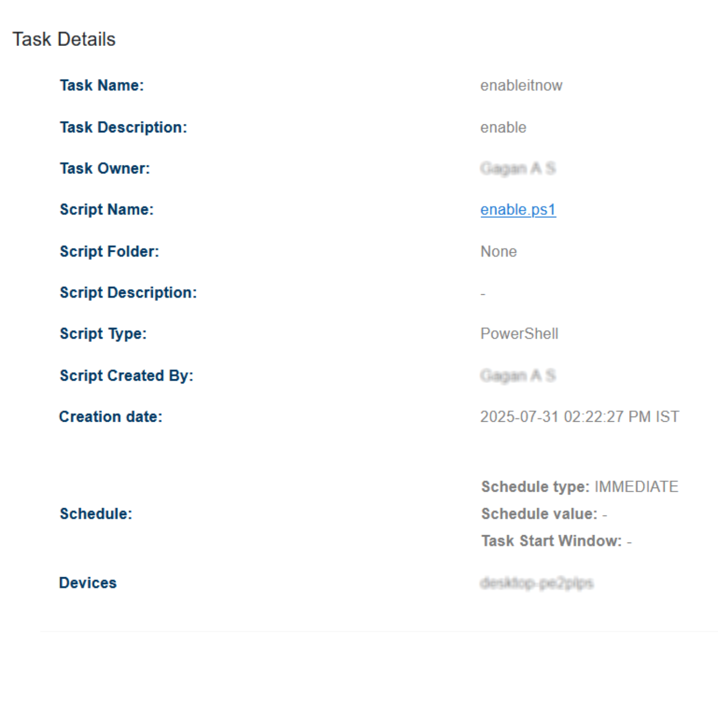 Script Name and Type (e.g., PowerShell, Bash)