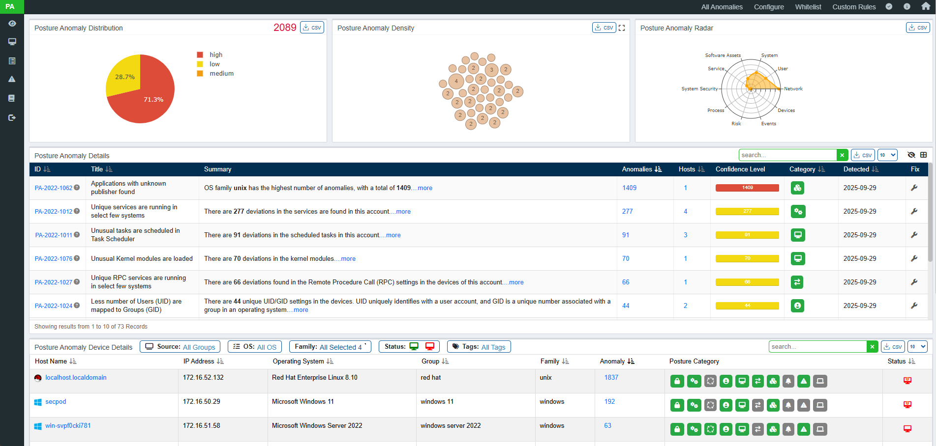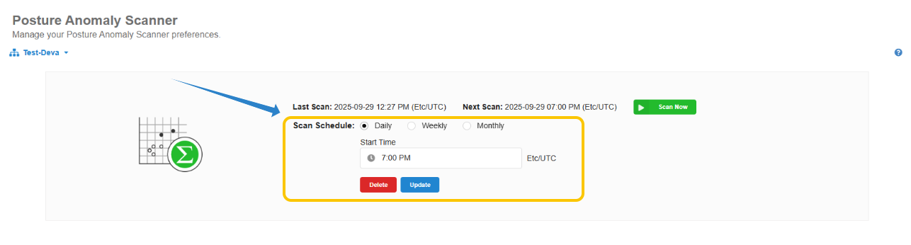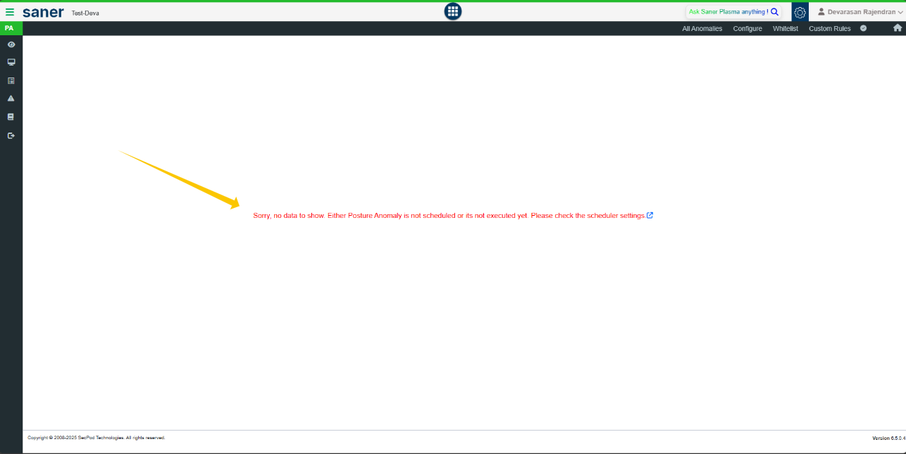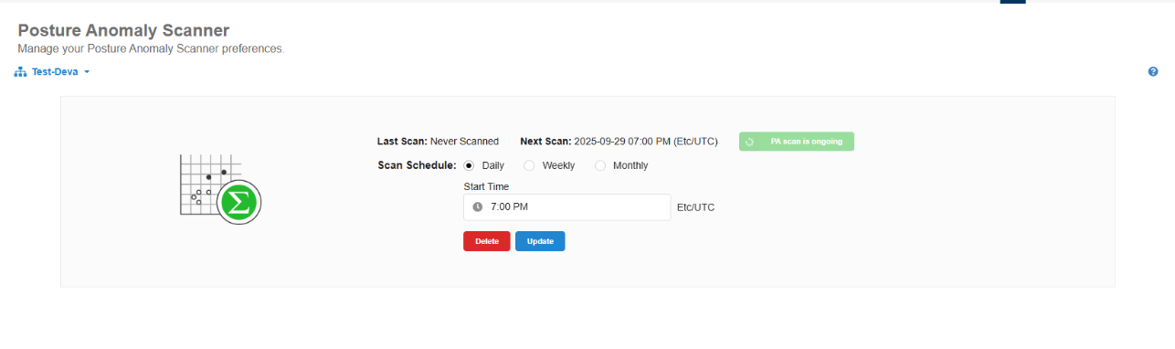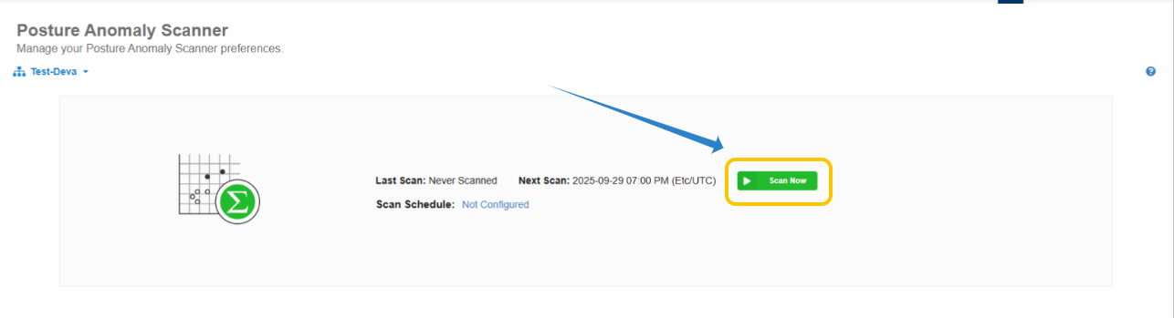 When you access the Posture Anomaly (PA) dashboard for the first time, you may notice that it appears blank. This is expected if a PA Scan has not yet been performed on the account.