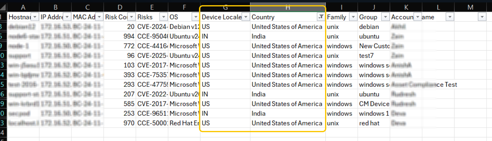 Open the exported file to view the complete list of devices, including the time zone and related details.