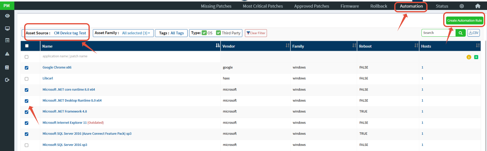 Step 4: Select Assets and Create Automation Rule