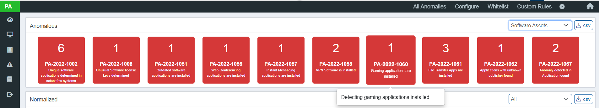 Locate the anomaly PA-2022-1060 – Gaming applications are installed.