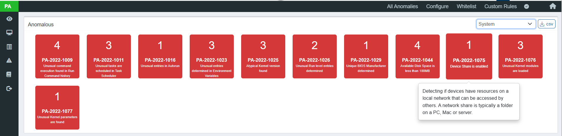Navigate to the Posture Anomaly (PA) Dashboard.