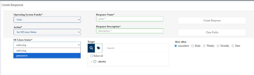 - Response Description: Describe the purpose, e.g., "Switch SELinux to permissive mode".