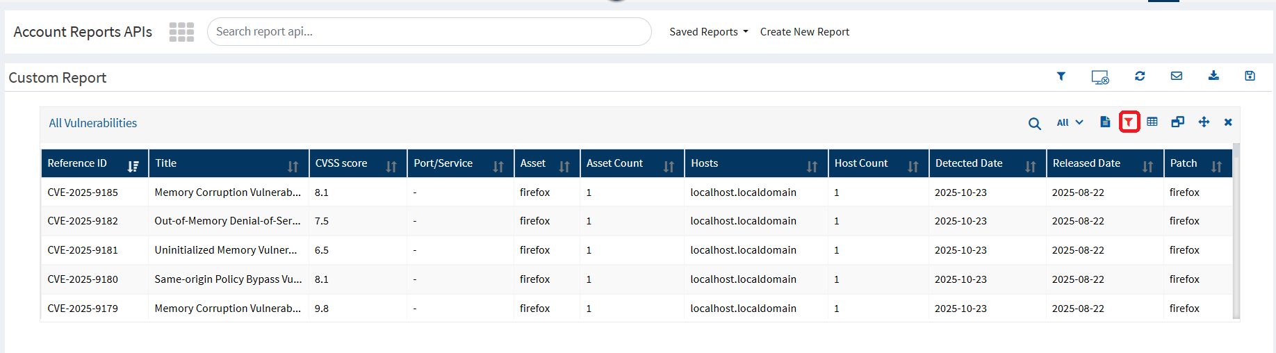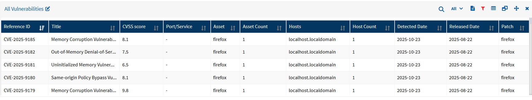 If more than one application reports the same CVE, ensure the correct filters are applied.