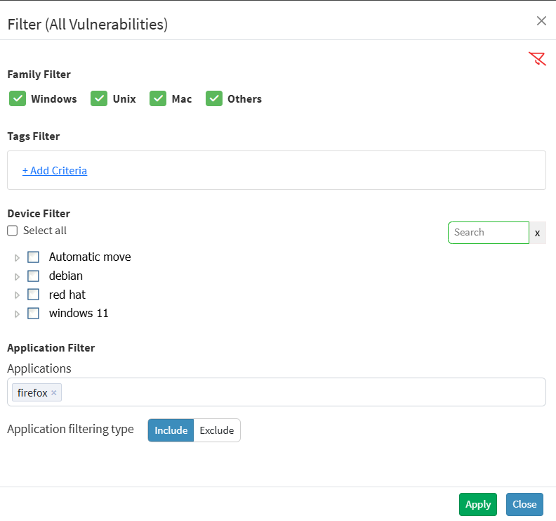 Under Application Filter, select the application that contains the required CVE