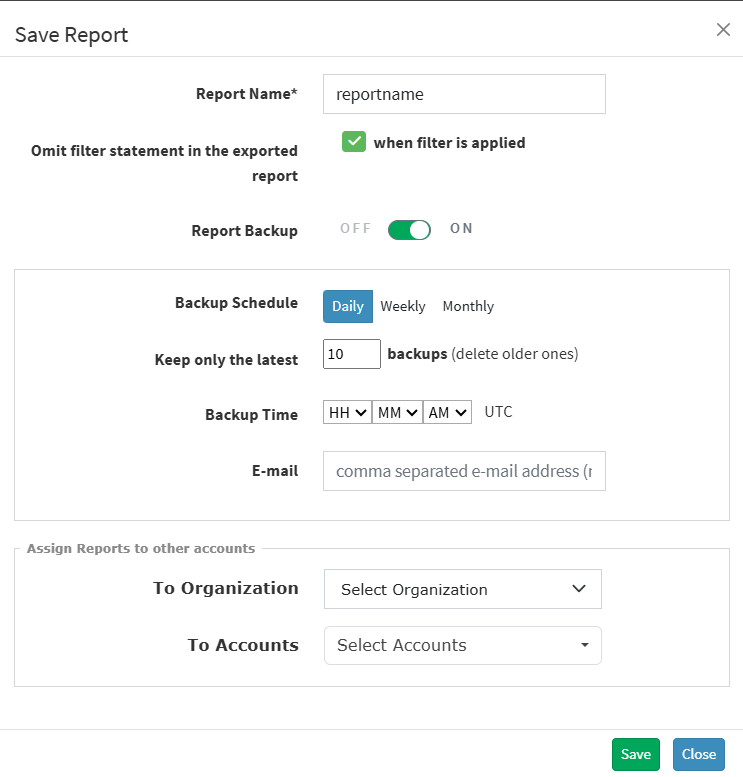 Enter a name and save the report